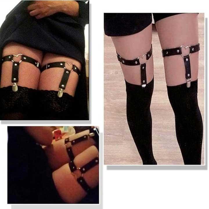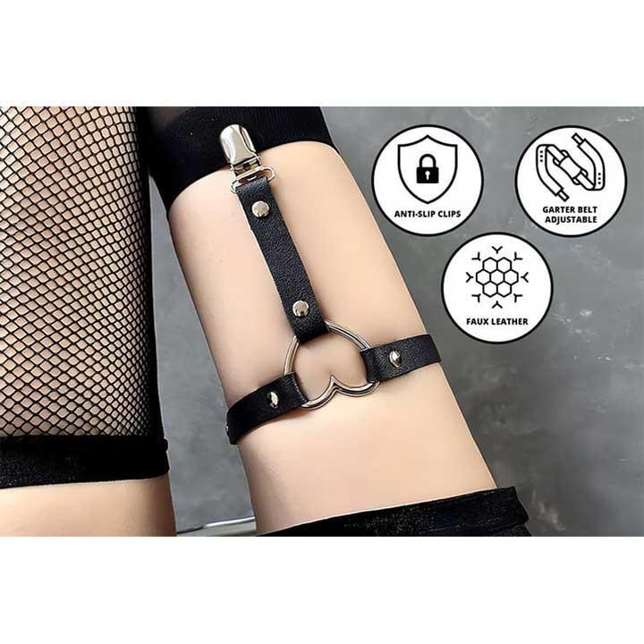 Гартери на ноги з металевими кільцями та ланцюгами, що регулюються застібками. Підходить для ігор, а також як аксесуар поверх одягу! Ширина ремінців 1,6 см.