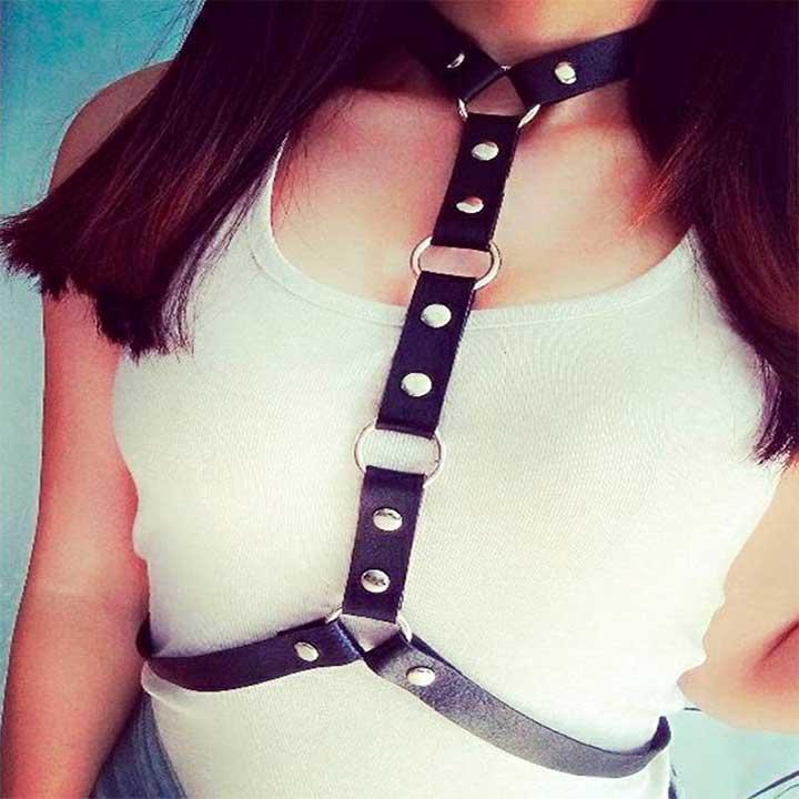 Пояс і ремені зручно охоплюють тіло, підкреслюючи форми. Матеріал: виготовлена з якісної екошкіри. Розмір: добре регулюються під потрібний розмір завдяки великому запасу регулювань!