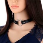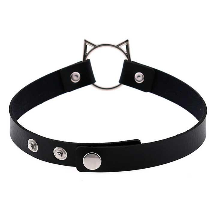 Шкіряний нашийник на шию з металевим кільцем і котячими вушками, який можна носити як самостійний аксесуар так і з повідцем. Розмір: довжина 44 см, ширина 1,8 см, діапазон регулювання 35 ~ 42 см Матеріал: екошкіра, метал.