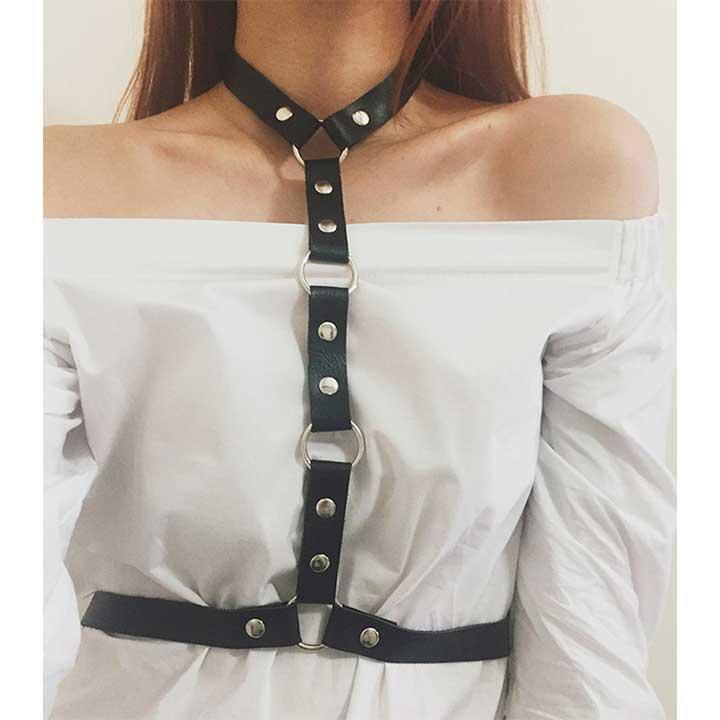 Стильний дизайн і практична конструкція, яка підходить для fashion-зйомок, заходів та творчих образів. Розмір: за допомогою пряжок портупея регулюється до необхідних розмірів. Матеріал: еко-шкіра, метал.